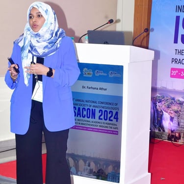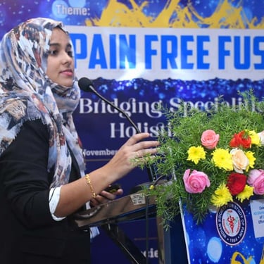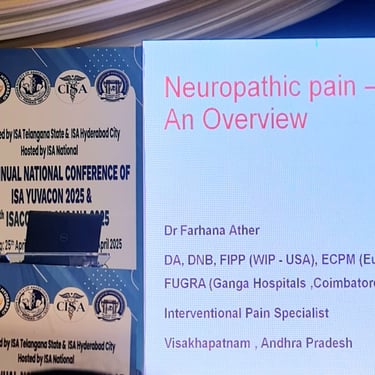Dr. Farhana Ather is a young, dynamic, and highly accomplished Pain Specialist from the city of Visakhapatnam. A Gold Medalist in Anaesthesiology, she is the only Pain specialist from the Telugu states (AP and Telangana ) to have completed dual internationally recognised elite Pain degrees— FIPP (World Institute of Pain, USA), ECPM (Brussels, Europe), and FIAPM (India).